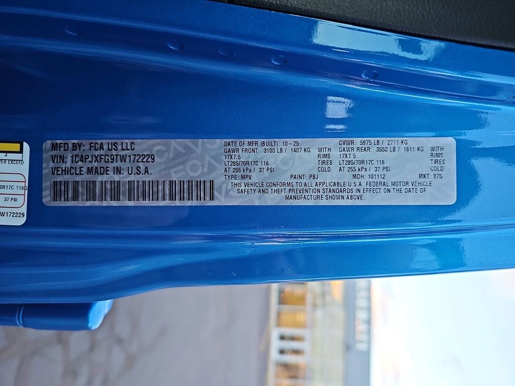 12.3 Touchscreen Display, Apple CarPlay/Android Auto, Black 3-Piece Hard Top, Blind Spot & Cross Path Detection, Freedom Panel Storage Bag, Heated Front Seats, Heated Steering Wheel, Rear Window Defroster, Rear Window Wiper/Washer, 4-Wheel Disc Brakes, 4.10 Rear Axle Ratio, 4G LTE Wi-Fi Hot Spot, 8 Speakers, ABS brakes, Air Conditioning, Alloy wheels, Alpine Premium Audio System, AM/FM radio: SiriusXM with 360L, Apple CarPlay, Auto High Beam Headlamp Control, Auto-Dimming Rear-View Mirror, Automatic temperature control, Aux Battery, Brake assist, Cloth Low-Back Bucket Seats, Compass, Connected Travel & Traffic Services, Connectivity - US/Canada, Convenience Group, Delay-off headlights, Driver door bin, Driver vanity mirror, Dual front impact airbags, Dual front side impact airbags, Electronic Stability Control, Emergency communication system: Jeep Connect, For More Info, Call 800-643-2112, Front anti-roll bar, Front Bucket Seats, Front Center Armrest w/Storage, Front dual zone A/C, Front fog lights, Front reading lights, Fully automatic headlights, Google Android Auto, GPS Navigation, HD Radio, Heated door mirrors, Illuminated entry, Integrated Center Stack Radio, Integrated Off-Road Camera, Integrated roll-over protection, Integrated Voice Command w/Bluetooth®, Low tire pressure warning, MOPAR All-Weather Floor Mats, MyFlexCare Service Plan, Non-Lock Fuel Cap w/o Discriminator, Occupant sensing airbag, Outside temperature display, Overhead airbag, Panic alarm, ParkSense Rear Park Assist System, ParkView Rear Back-Up Camera, Passenger door bin, Passenger vanity mirror, Performance Suspension, Power door mirrors, Power steering, Power windows, Quick Order Package 24R Rubicon, Radio data system, Radio: Uconnect 5 Nav w/12.3 Display, Radio: Uconnect 5 w/12.3 Display, Rear anti-roll bar, Rear reading lights, Remote keyless entry, Remote Start System, Safety Group, Security system, SiriusXM Radio Service, SiriusXM w/360L, Speed control, Split folding rear seat, Steering wheel mounted audio controls, Stop-Start Dual Battery System, Tachometer, Technology Group, Telescoping steering wheel, Tilt steering wheel, Traction control, Trip computer, Universal Garage Door Opener, Variably intermittent wipers, Voltmeter, Wheels: 17 x 7.5 Machined/Painted Black, 12.3 Touchscreen Display, Apple CarPlay/Android Auto, Black 3-Piece Hard Top, Blind Spot & Cross Path Detection, Freedom Panel Storage Bag, Heated Front Seats, Heated Steering Wheel, Rear Window Defroster, Rear Window Wiper/Washer. 18/23 City/Highway MPG Price includes: $3500 - 2026 National Select Inventory Bonus Cash . Exp. 01/04/2027