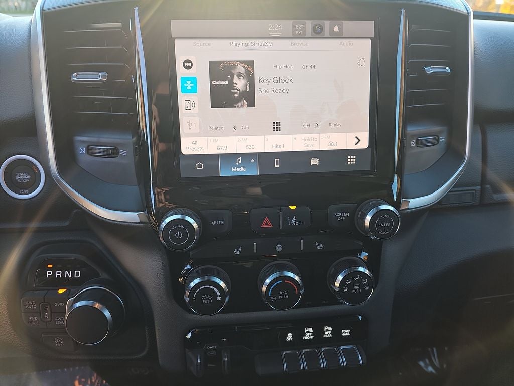 Apple CarPlay/Android Auto, Heated Front Seats, Heated Steering Wheel, 115V Auxiliary Power Outlet, 2nd Row In Floor Storage Bins, 3 Rear Seat Head Restraints, 4 Way Front Headrests, 4-Wheel Disc Brakes, 400W Inverter, 48V Belt Starter Generator, 4G LTE Wi-Fi Hot Spot, 6 Speakers, ABS brakes, Air Conditioning, Alloy wheels, AM/FM radio, Apple CarPlay, Auto High-beam Headlights, Auto Power-Folding Mirrors, Auto-Dimming Exterior Driver Mirror, Auto-Dimming Rear-View Mirror, Big Horn Level 1 Equipment Group, Black Exterior Mirrors, Black Premium Power Mirrors, Body Color Fender Flares, Brake assist, Bucket Seats, Bumpers: chrome, Center Console Parts Module, Cloth Bucket Seats, Compass, Connectivity - US/Canada, Convex Wide-Angle Exterior Mirror Insert, Delay-off headlights, Deluxe Cloth Bucket Seats, Driver door bin, Dual front impact airbags, Dual front side impact airbags, Electronic Stability Control, Exterior Mirrors Courtesy Lamps, Exterior Mirrors w/Heating Element, Exterior Mirrors w/Supplemental Signals, Front anti-roll bar, Front Bucket Seats, Front Center Armrest w/Storage, Front fog lights, Front reading lights, Front Seat Back Map Pockets, Front wheel independent suspension, Full Length Floor Console, Fully automatic headlights, Global Telematics Box Module (TBM), Glove Box Lamp, Google Android Auto, GPS Antenna Input, Heated door mirrors, Illuminated entry, Integrated Center Stack Radio, Integrated Voice Command w/Bluetooth®, Leather Wrapped Steering Wheel, Low tire pressure warning, Manual Adjust 4-Way Driver Seat, Manual Adjust 4-Way Front Passenger Seat, Manual Folding Exterior Mirrors, Manufacturer's Statement of Origin, MOPAR Front & Rear Rubber Floor Mats, MyFlexCare Service Plan, Occupant sensing airbag, Outside temperature display, Overhead airbag, Overhead console, Panic alarm, ParkView Rear Back-Up Camera, Passenger door bin, Passenger vanity mirror, Power 2-Way Driver Lumbar Adjust, Power Adjust 8-Way Driver Seat, Power Adjustable Pedals, Power door mirrors, Power steering, Power windows, Quick Order Package 21Z Big Horn, Radio data system, Radio: Uconnect 5 W w/8.4 Display, RAM Grille Badge - Chrome, Rear 60/40 Folding Seat, Rear anti-roll bar, Rear Center Armrest, Rear Dome w/On/Off Switch Lamp, Rear Power Sliding Window, Rear step bumper, Rear Wheelhouse Liners, Rear Window Defroster, Remote keyless entry, SiriusXM Radio Service, SiriusXM Satellite Radio, Speed control, Steering Wheel Mounted Audio Controls, Sun Visors w/Illuminated Vanity Mirrors, Supplier Part Tracking (J-1), Tachometer, Telescoping steering wheel, Tilt steering wheel, Traction control, Trailer Brake Control, Trip computer, Universal Garage Door Opener, USB Host Flip, Variably intermittent wipers, Voltmeter, Wheels: 18 x 8 Cast-Aluminum Painted, Wheels: 20 x 9 Aluminum Chrome Clad (WRK), Apple CarPlay/Android Auto, Heated Front Seats, Heated Steering Wheel. 18/24 City/Highway MPG Price includes: $3500 - 2026 National Retail Consumer Cash . Exp. 03/02/2026