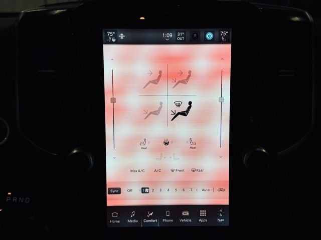 Designed to handle the demands of your active lifestyle, this Ram 1500 offers a spacious and versatile interior, with a rear power sliding window, 2nd-row in-floor storage bins, and a 400W inverter to power your gear on the go. The Dual-Pane Panoramic Sunroof floods the cabin with natural light, creating an open and airy atmosphere.