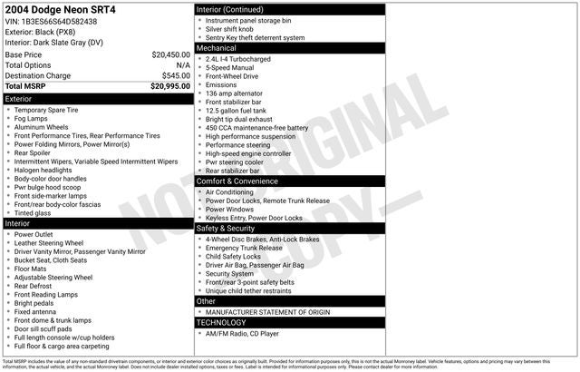 Don't miss your chance to own this exceptional 2004 Dodge SRT-4 Base. Schedule a test drive today and discover the true power and precision that this vehicle has to offer.