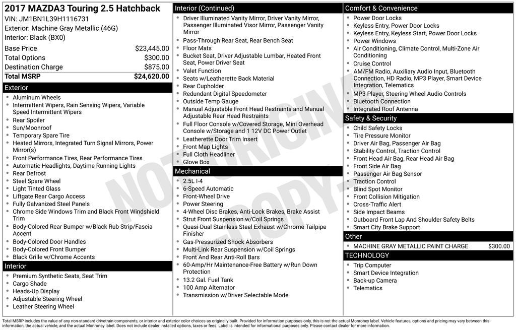 - Vehicle Name: Mazda Mazda3 5-Door