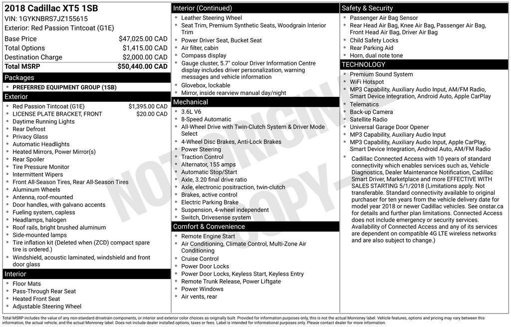 - Emergency communication system: OnStar and Cadillac connected services capable