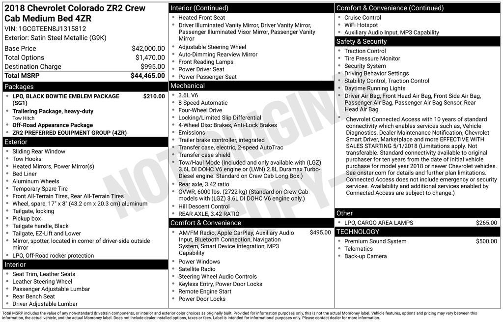 - Vehicle Name: Chevrolet Colorado