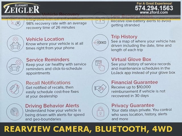 When you choose a Blue Certified vehicle, you'll enjoy benefits that include: *90-Day/4,000-Mile Comprehensive Limited Warranty *Complimentary 24/7 Roadside Assistance *11,000 FordPassTM Rewards Points towards Your First Maintenance Visit Call 574-294-1563 TODAY for additional details! At Zeigler Auto Group, our mission is simple: Our family providing your family with the ULTIMATE automotive experience. Shop confidently from over 1,000 fully reconditioned, turn-key ready pre-owned vehicles. Every vehicle includes a 3-year LoJack Stolen Vehicle Recovery System for added security and peace of mind. (One-time $699 fee applies.)