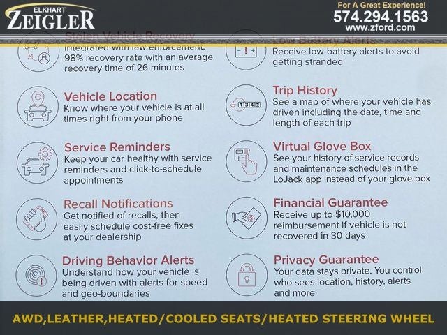 When you choose a Blue Certified vehicle, you'll enjoy benefits that include: *90-Day/4,000-Mile Comprehensive Limited Warranty *Complimentary 24/7 Roadside Assistance *11,000 FordPassTM Rewards Points towards Your First Maintenance Visit Call 574-294-1563 TODAY for additional details! At Zeigler Auto Group, our mission is simple: Our family providing your family with the ULTIMATE automotive experience. Shop confidently from over 1,000 fully reconditioned, turn-key ready pre-owned vehicles. Every vehicle includes a 3-year LoJack Stolen Vehicle Recovery System for added security and peace of mind. (One-time $699 fee applies.)