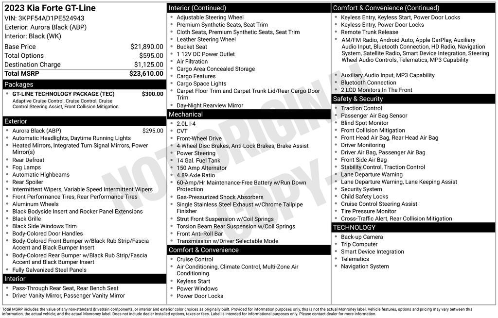 - Vehicle Name: Kia Forte