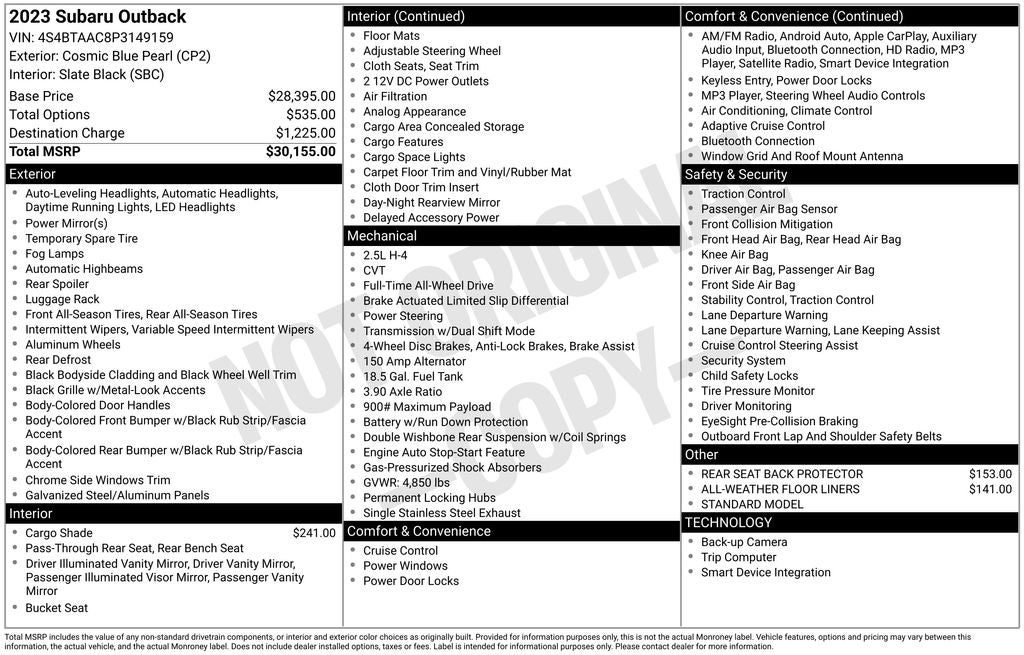 - Vehicle Name: Subaru Outback