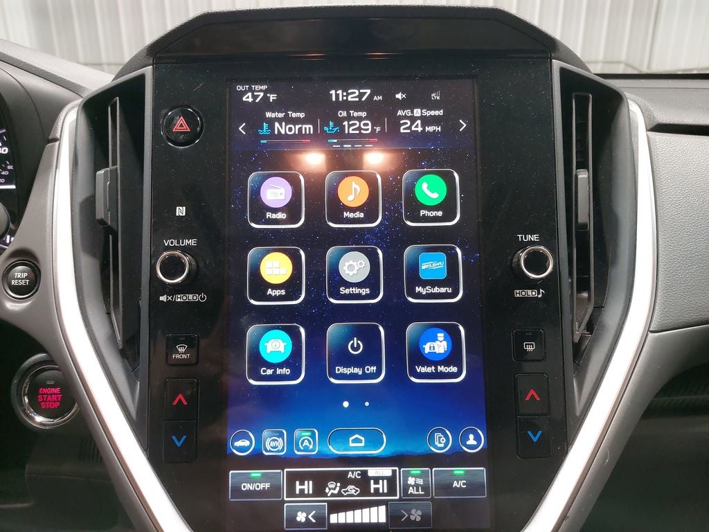 - Radio: Subaru STARLINK 11.6" Multimedia Plus Sys -inc: AM/FM stereo, HD Radio, multi-touch gesture high resolution display screen, voice activated controls, Bluetooth® audio streaming and hands-free phone connectivity, Bluetooth® hands-free SMS text messaging connectivity, iPod control capability, SiriusXM All Access Radio (4 months free trial included/subscription required after), SiriusXM Travel Link (4 months free trial included/subscription required after), smartphone integration: Android Auto and Apple CarPlay w/full screen view and wireless connection, USB and Over The Air (OTA) audio system update, steering wheel audio system and Bluetooth® control switches, 6 speakers (2 dash panel tweeter, 2 front door and 2 rear door), illuminated 3.5mm auxiliary input jack, illuminated front USB A and C input/charge ports and illuminated rear USB A and C charge ports